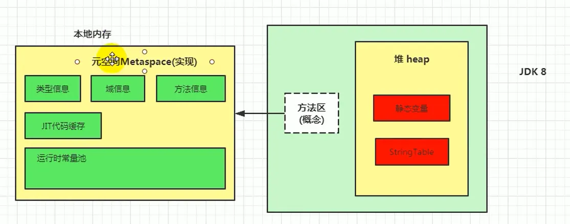 随着Java8的到来,HotSpot VM中再也见不到永久代了。但是这并不意味着类的元数据信息也消失了。这些数据被移到了一个与堆不相连的本地内存区域,这个区域叫做元空间(Metaspace)。