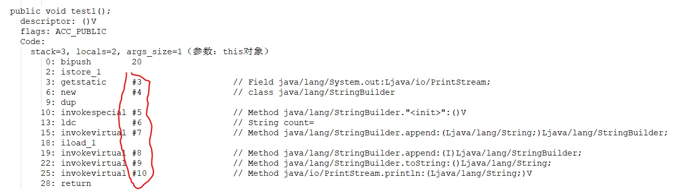 5方法的字节码(bytecodes)、操作数栈、局部变量表及大小(abstract和native方法除外)